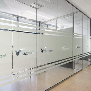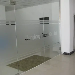 Hiện nay chất liệu kính được sử dụng trong rất nhiều công trình trang trí khác nhau. Với mỗi cách thiết kế tấm kính lại có lợi ích riêng. Và trong việc thiết kế của ra vào cũng vậy. Ngày nay, hầu hết mọi văn phòng đều sử dụng cửa ra vào bằng chất liệu kính thay vì các chất liệu như gỗ,… của trước kia. Nếu giấy bóng dán kính sử dụng tại phòng tắm kính mang lại sự tinh tế, trang nhã thì khi dán sản phẩm tại cửa kính của các phòng nó lại toát lên sự chuyên nghiệp của đội ngũ nhân viên làm việc bên trong căn phòng. Và cũng giống với phòng tắm kính, giấy bóng dán kính được dán lên cửa ra vào của văn phòng cũng nhằm mục đích che mờ, đảm bảo được sự riêng tư cho mọi nhân viên trong phòng.